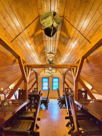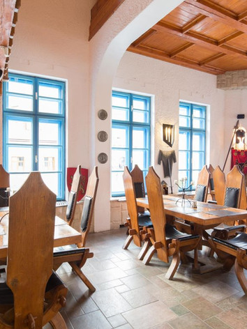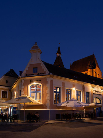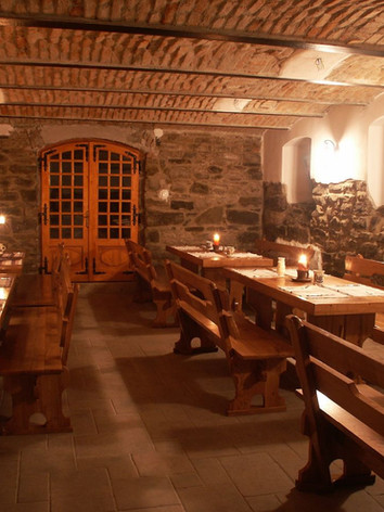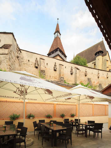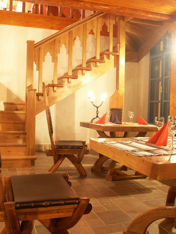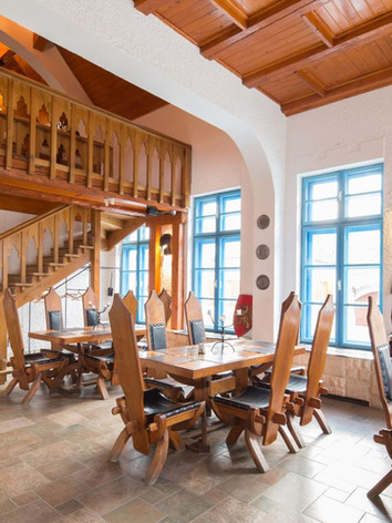 Cladirea a fost renovata pe baza unei vechi picturi gasite in tezaurul bisericii fortificate si a fost transformata intr-un restaurant medieval cu scaune mari, cu spatar din lemn si piele. Pe pereti puteti admira tablouri uriase cu scene medievale, cavaleri si domnite insa puteti gasi si sulițe, scuturi și multe alte decorațiuni medievale, toate creând o atmosferă confortabilă și elegantă.